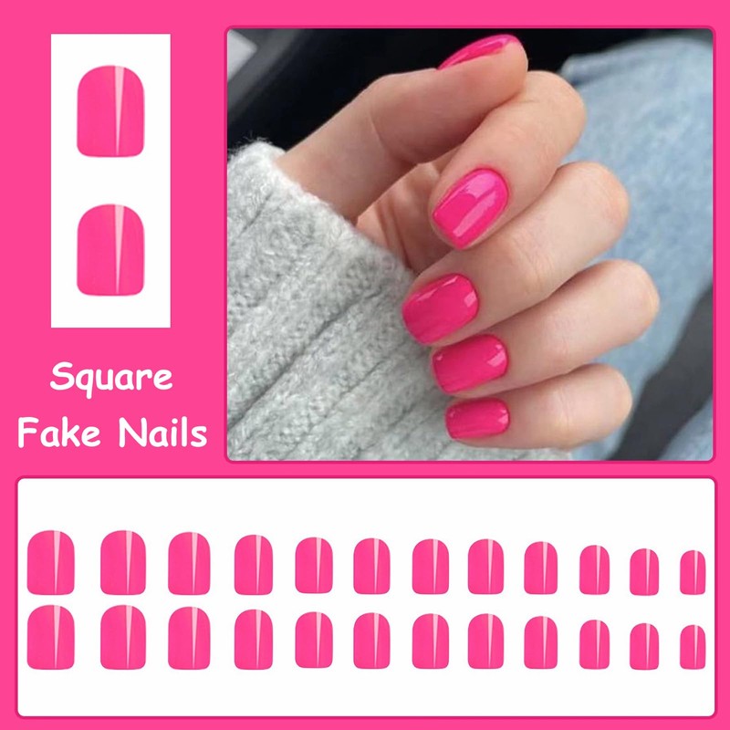 • 【Unique Design】 According to the most popular elements of the summer moment, these short square press on nails are designed with hot pink gel.