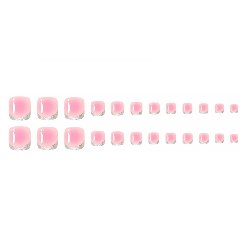 - 【Unique Design】 According to the most popular elements of the summer moment, these press on toenails are designed with pink ombre and bling silver glitter.
