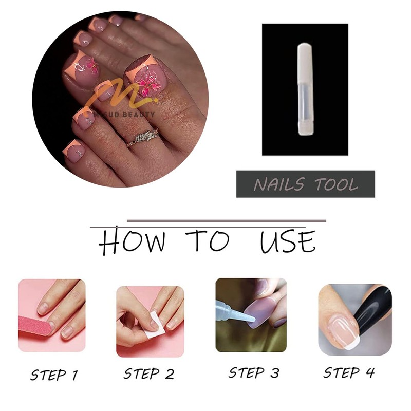 - 【Easy to Use】 Clean and polish your toenail, select a right size of the false toenail, apply the glue to the back of the nail then press it on your nail for 20 seconds. Now you have new cute press on toenails!
