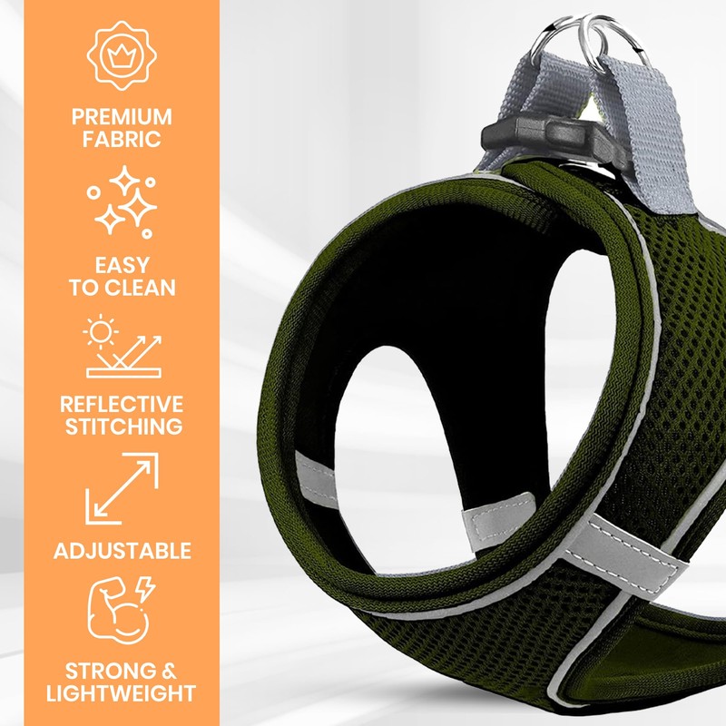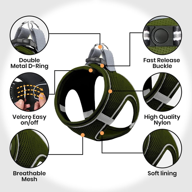 - ✅ Adjustable Fit: The Air Mesh Harness & Leash features fully adjustable straps, allowing you to customize the fit to your pet's unique body shape. This ensures a snug and secure fit, reducing the risk of your pet slipping out of the escape proof dog harness.