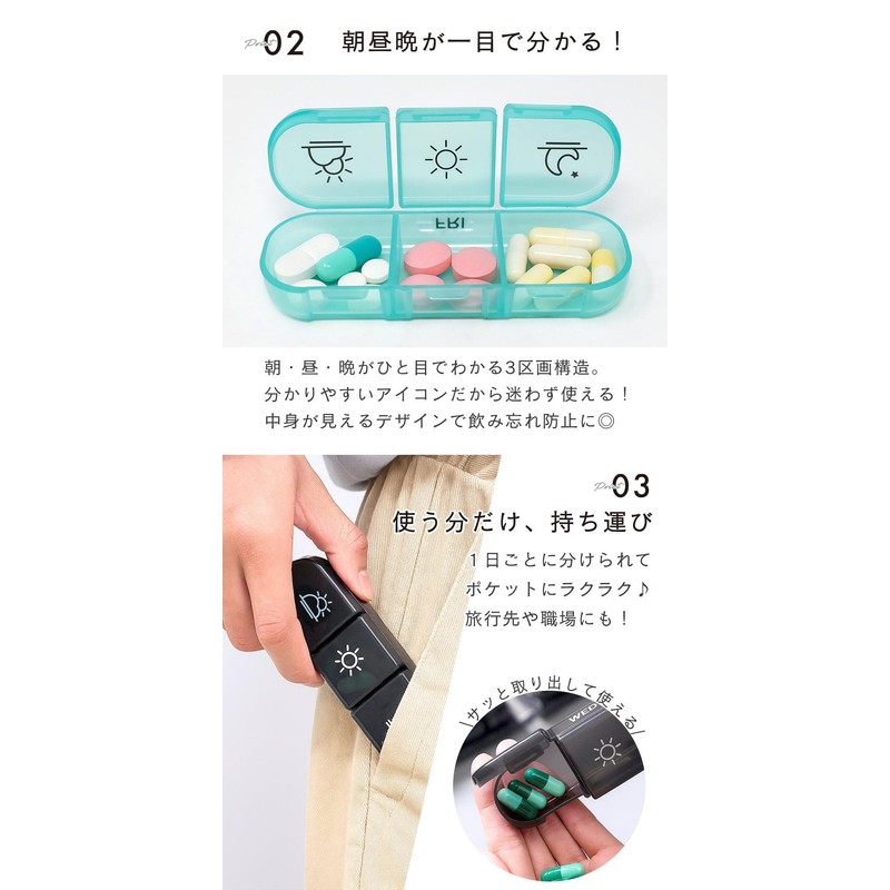 - 【1週間分をまとめて管理】朝・昼・晩の3区画で1日分を分けて収納可能。1週間分をまとめて整理でき、毎日の服薬がスムーズに。