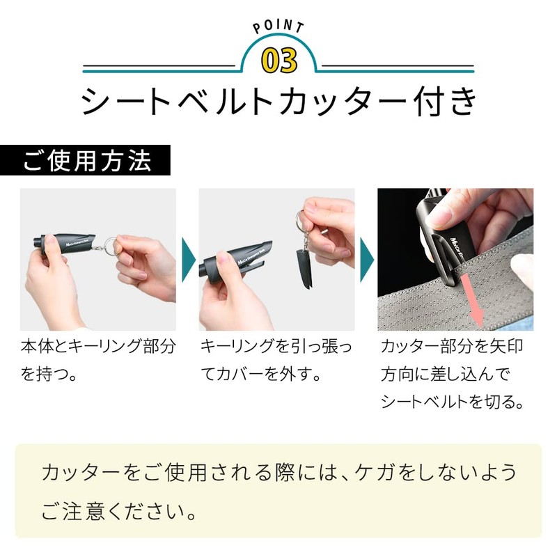 • Seat Belt Cutter Included: Comes with a cutter that can cut the seat belt for convenient escape in an emergency