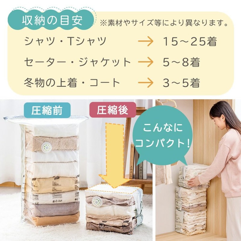 - (Easy to Use) You can apply weight to deflate air, so you can easily compress without tools. You can also use a vacuum cleaner