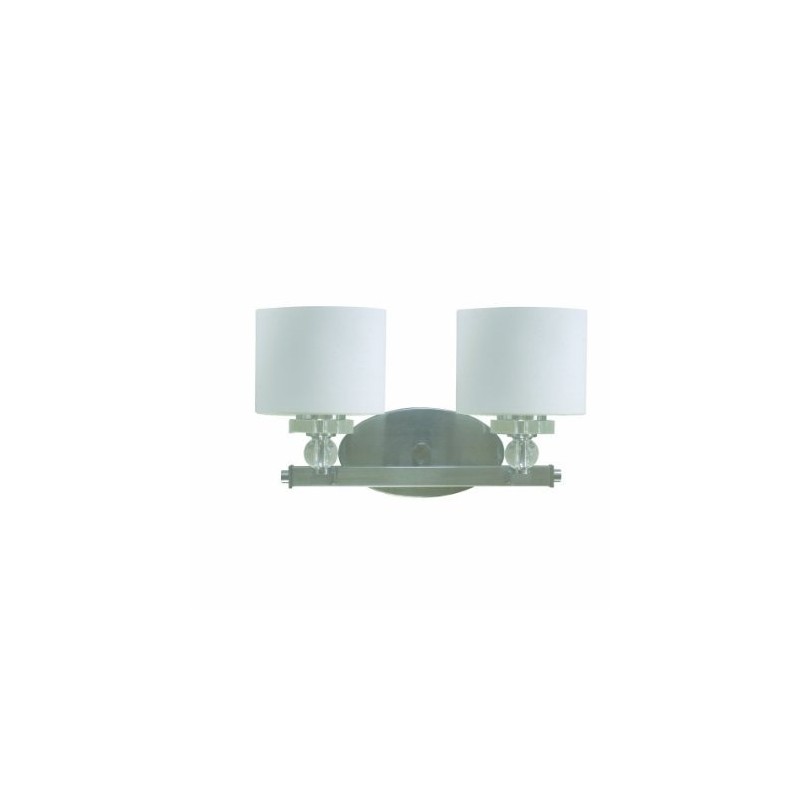 Mitchell Peak 2 Light Vanity in Satin Steel Finish with Dove White Glass