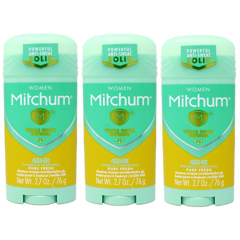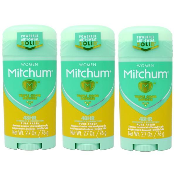 Mitchum Women Triple Odor Defense Invisible Solid 48HR Antiperspirant & Deodorant, Pure Fresh, 2.7 OZ - 3 Pack
