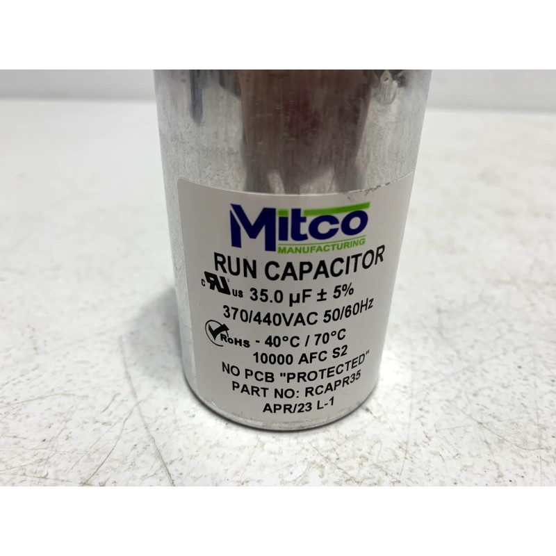 This is a NEW - unused Mitco RCAPR35 Dual Run Capacitor 35+5 MFD 370/440 VAC