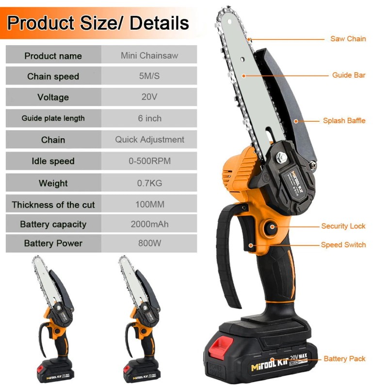MITOOL KIT 2 Battery Mini Electric Chain Saws Cordless Handheld Portable Small Chainsaw