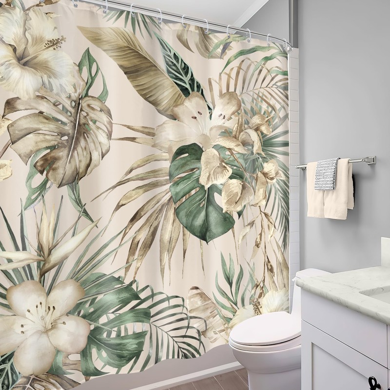 - - **Machine Washable Convenience**: This tropical shower curtain is designed for your comfort; it's machine washable and quick-drying, making it easy to maintain a fresh and clean environment in your bathroom.
