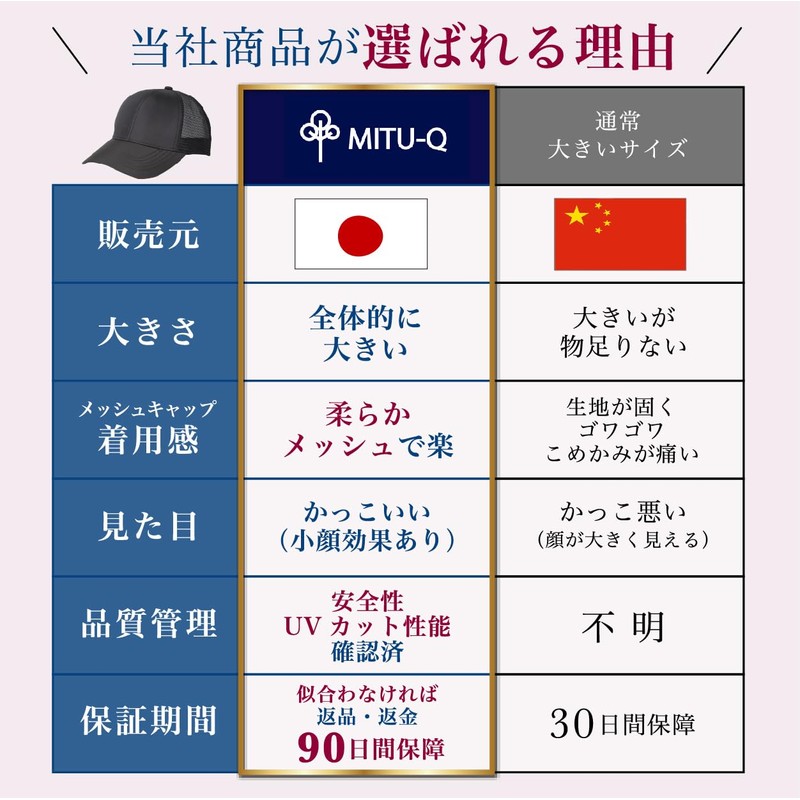 MITSU-Q Men's Hat, Cap, Large Size, Deep, Extra Large, 23.6 - 26.8 inches (60 - 68 cm), Japanese Dealer / UV Effect, Scalp Safety Tested, Autumn & Winter, Small Face Effect, Stylish, Comfortable