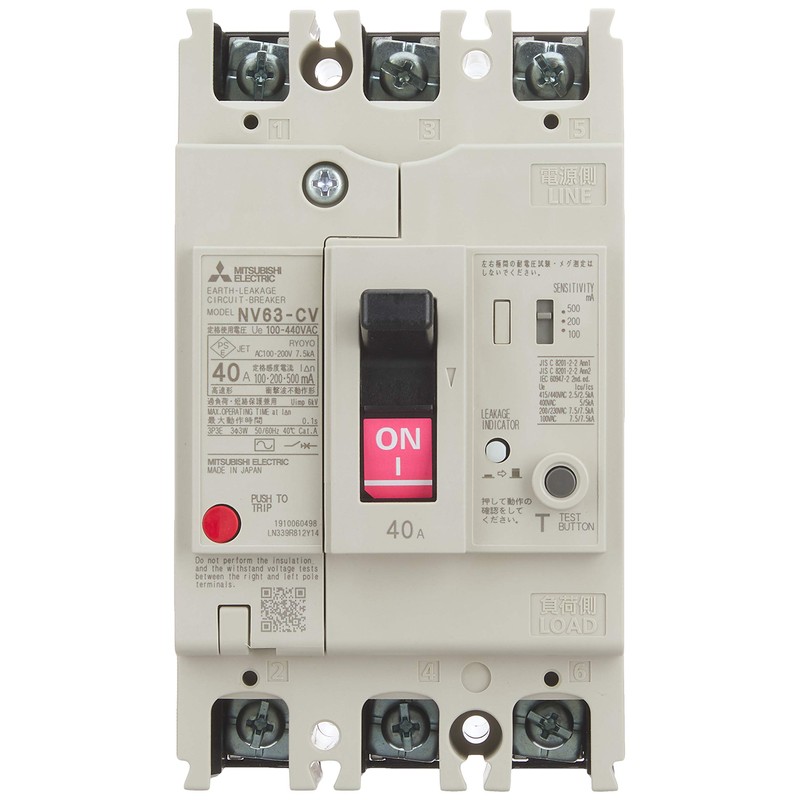 Mitsubishi Electric WS-V Series GT-Leakage Circuit Breaker NV63-CV 3P 40A 100-440V 1.2.500MA