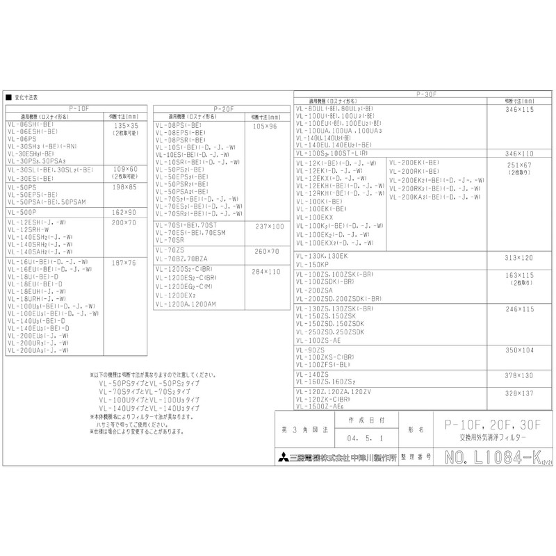 Mitsubishi Loss Nye System Materials Replacement Air Purifier Filter P – 20 °F