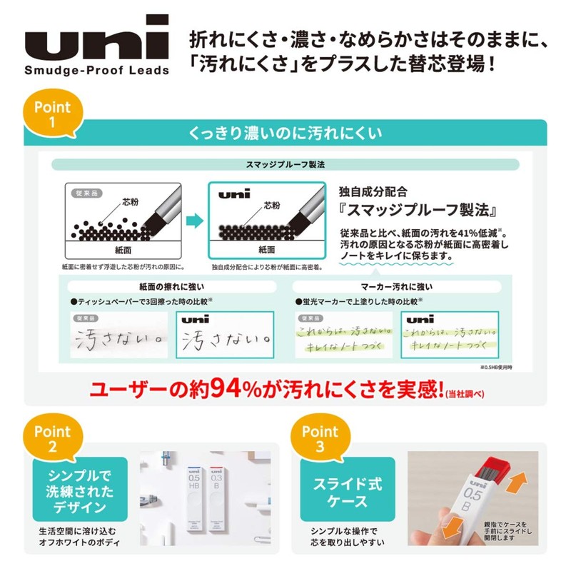 - Smudge Proof Method: A new formula to produce a core, which suppresses dirt by applying the wick powder to the paper surface thanks to its unique ingredients