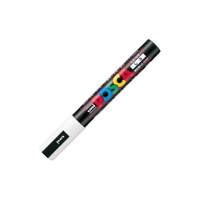 Mitsubishi Pencil, Water-Based Markers, Posca, PC-5M.1, Medium Point, White (5 Pieces)