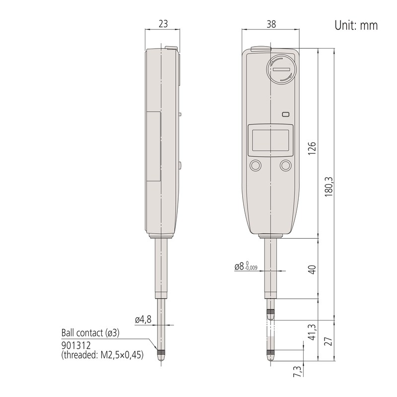 Mitutoyo 575-121 Absolute LCD Digimatic Indicator ID-U M2.5X0.45 Thread 8mm Stem Dia. Flat Back 0-25.4mm Range 0.01mm Graduation +/-0.02mm Accuracy