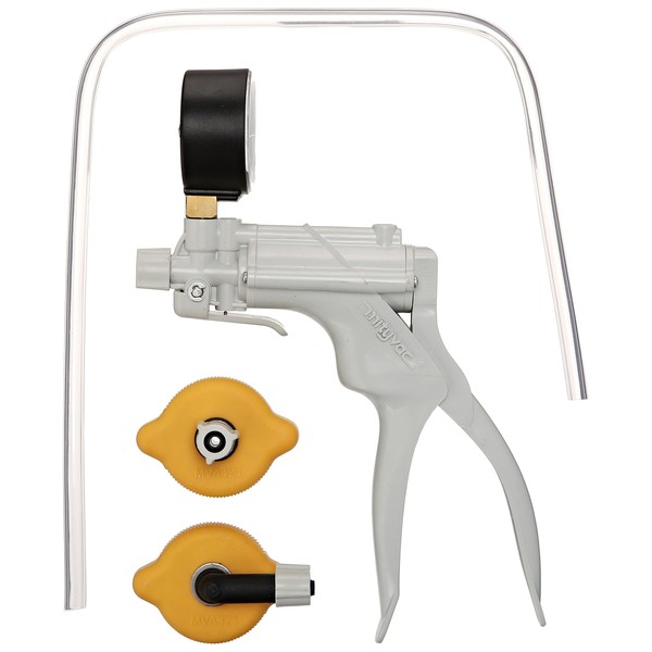 * Durable, lightweight, non-corrosive PVC construction * Pivoting lever action maximizes output with minimal operator effort * Gauge displays psi and kpa units * Powerful in-line piston design * One finger lever-action vacuum release