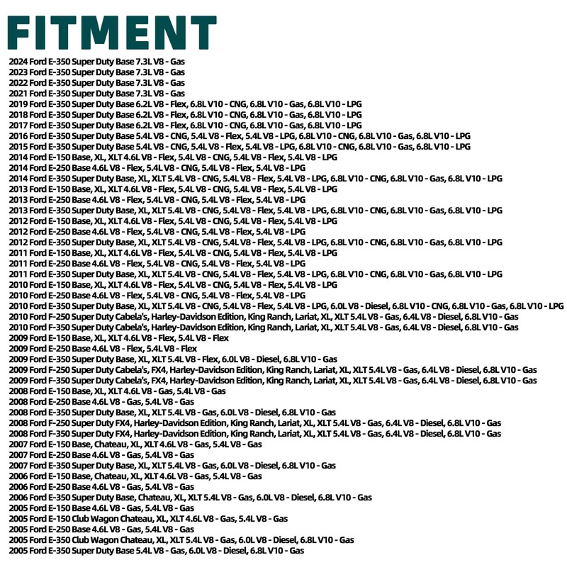 Compatible with 2005 Ford E-350 Club Wagon Chateau, XL, XLT 5.4L V8 - Gas, 6.0L V8 - Diesel, 6.8L V10 - Gas
