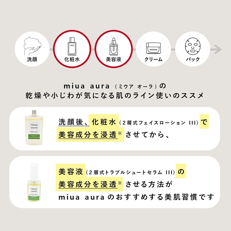 miua aura ミウアオーラ 2層式 トラブルシュートセラム III ディープモイスチャー 30ml / 高保湿 ナイアシンアミド美容液 乾燥肌 美容液 敏感肌 顔 洗顔 後 化粧水 の後に使用 保湿 アルガンオイル ナイアシンアミド ビタミンc誘導体 ヒアルロン酸