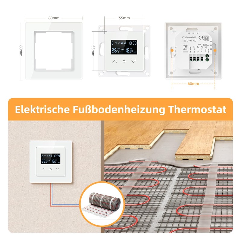 - Easy to use and connection: pair the smart thermostat with the Smart Life/Tuya app on the mobile phone or tablet via 2.4 G WiFi to realise the remote control of the electric underfloor heating thermostat at home anytime and anywhere. Heating thermostat is compatible with Alexa, Google Home and more and can control the smart thermostat with a simple voice command.