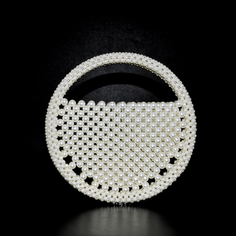 Miuco Round Shape Beaded Bag Pearl Clutch Luxury Handmade Bead Handbags Small Top Handle Bag White