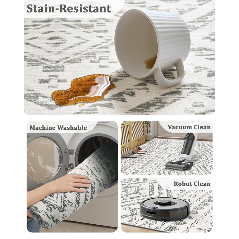 • Machine-Washable Rug: This slip-resistant carpet only requires regular vacuuming to remove dirt and debris. When a deeper clean is needed, our washable rug is machine washable, making daily maintenance simple and convenient.
