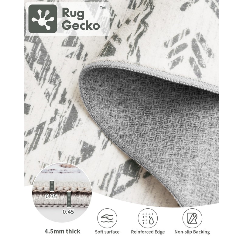 Miukiki 2x3 Area Rug for Living Room Moroccan Washable Rugs Non Slip Indoor Floor Carpet Foldable Large Soft Area Rug for Dining Room Bedroom with Low Pile(Grey,2'x3')