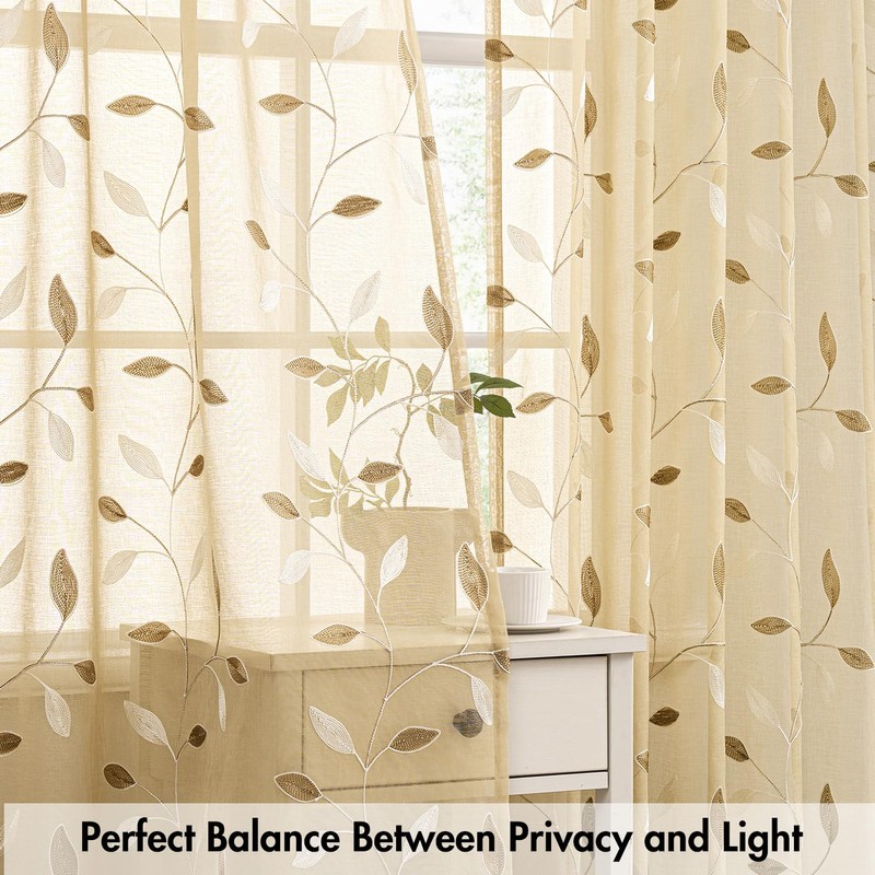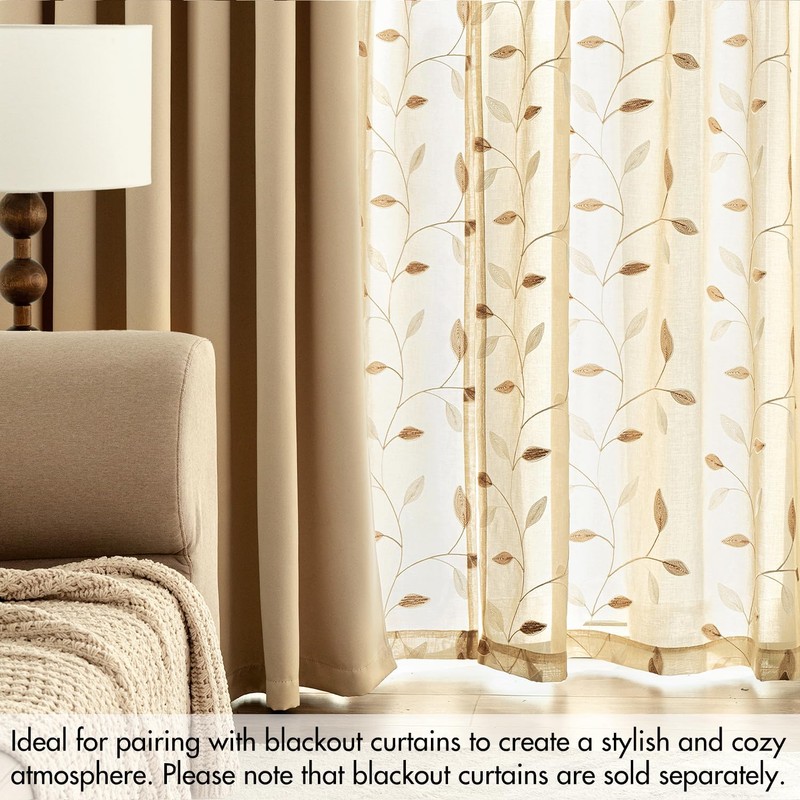 - GOOD DECORATION-Curtains suitable for most of windows and shutters, it also can be hung separately or paired with other. Pretty embroidered leaves on the sheer curtains creating a refreshing, natural and elegant sense to your room.