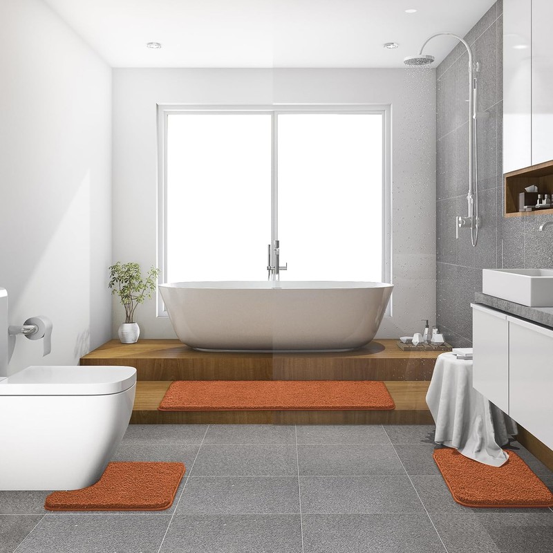 MIULEE Burnt Orange Bathroom Rugs Sets 3 Piece Including U Shaped Toilet Rug - Soft Absorbent Bath Mats Set with Non Slip Rubber Backside, Machine Washable - 20"x30"+16"x24"+U 20"x20"