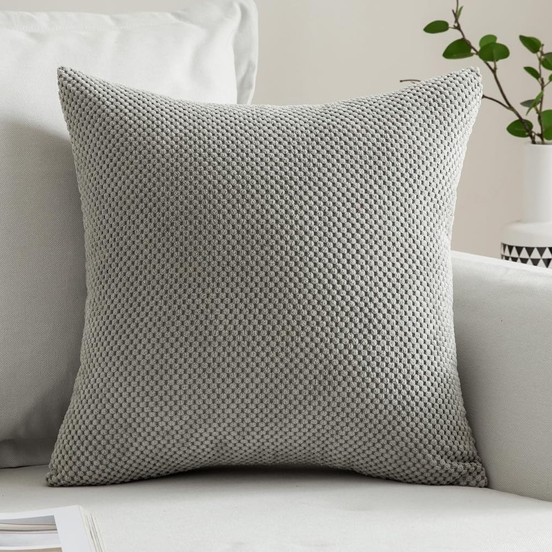 MIULEE Corduroy Cushion Cover Fabric Granule Throw Pillow Case Square Solid Home for Sofa Chair Couch Bedroom Decorative Pillowcases with Invisible Zipper 2 Pieces Light Grey 35x35cm 14x14 Inch