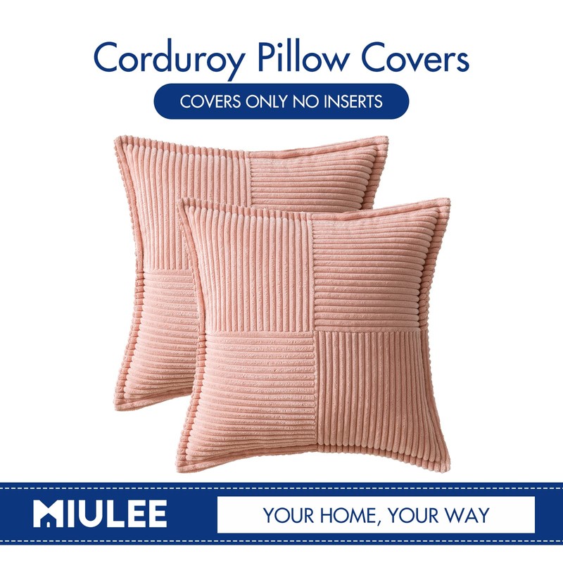 MIULEE Broadside Corduroy Pillow Covers with Splicing Set of 2 Super Soft Couch Pillow Covers Striped Decorative Textured Throw Pillows for Cushion Bed Livingroom