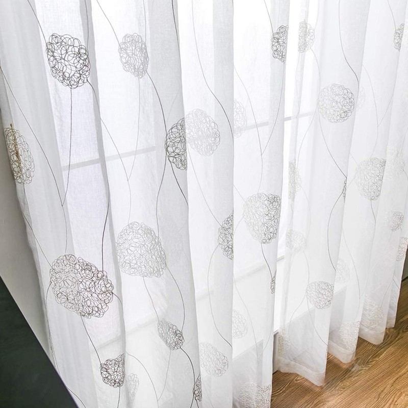 - The natural appearance makes this curtain look fashionable. The curtain colour is soft and adopts the design of floral embroidery patterns, which can add warmth to the surface of the window and make your window decorative and colourful. Stitched and embroidered, the curtains are very neat and even. There are no protruding threads.