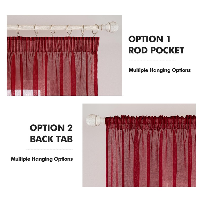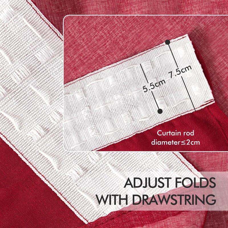 MIULEE Curtains with Ruffle Tape, Set of 2 Curtains, Living Room, Sheer Voile Curtains, Transparent, Bedroom, Red, 140 x 175 cm