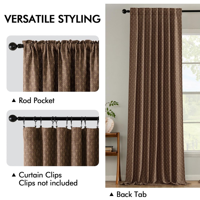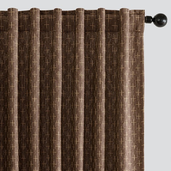 MIULEE Decorative Back Tab Linen Curtains with Geometric Pattern for Living Room Bedroom Farmhouse Rustic Thick Woven Textured Patterned Floor to Ceiling Drapes 102 Inch Long 2 Panels, Dark Coffee