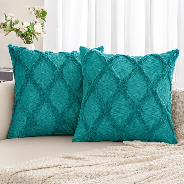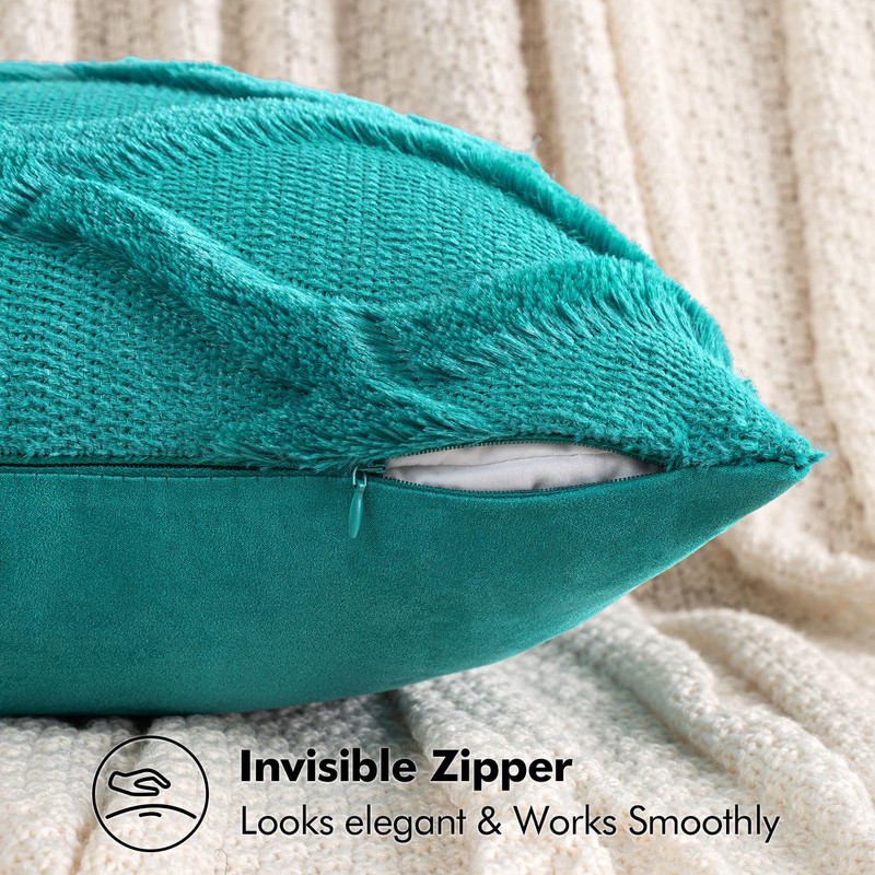 MIULEE Decorative Throw Pillow Covers Teal 18x18 Inch Set of 2, Soft Plush Faux Wool Couch Cushion Covers Farmhouse Throw Pillows for Couch Bed Sofa Living Room