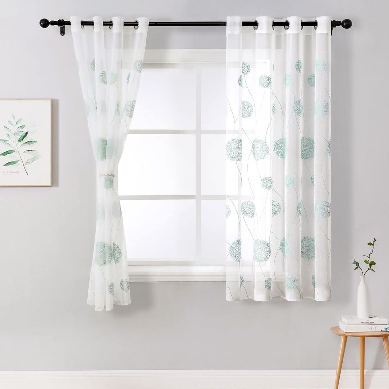 - DESIGN: The semi voile curtains with flora embroidered design. And the 1.6-inch high-quality perforated design is in line with the size of curtain rods in most families. It pulls smoothly and does not rust easily.