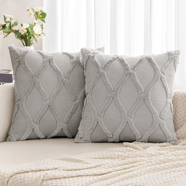 MIULEE Light Grey Decorative Throw Pillow Covers 18x18 Inch Set of 2, Soft Plush Faux Wool Couch Pillow Covers Farmhouse Throw Pillows for Couch Bed Sofa Living Room
