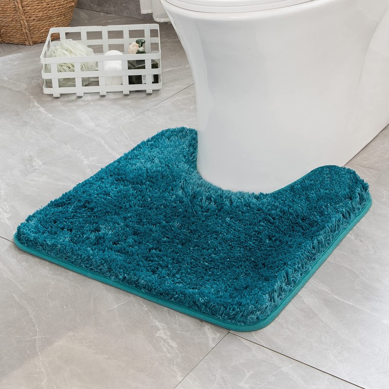MIULEE MIULEE Microfiber Toilet Bath Mat U-Shaped Contour Shaggy Bathroom Rugs Non Slip Extra Thick Soft Bath Rug Absorbent Water for Bathroom Commode Machine Washable(20x20 Inch, Teal)
