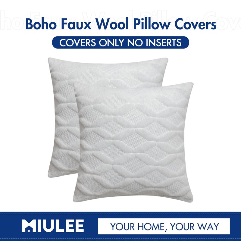 MIULEE Pack of 2 Christmas Embroidered Faux Wool Throw Pillow Covers Decorative Pillowcase Cushion Case for Couch Sofa Bedroom Car 18x18 Inch, Pure White