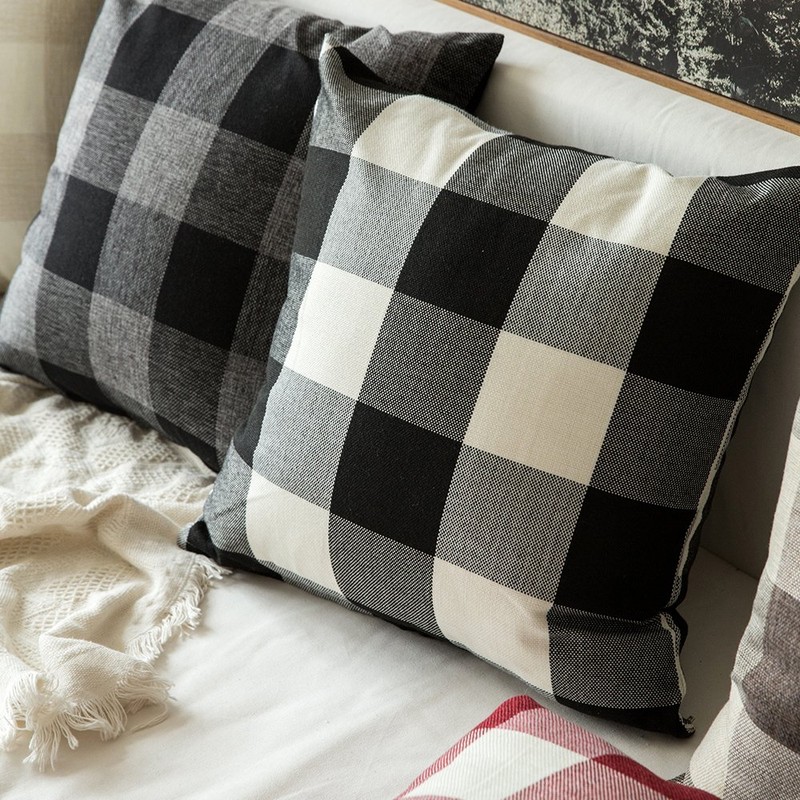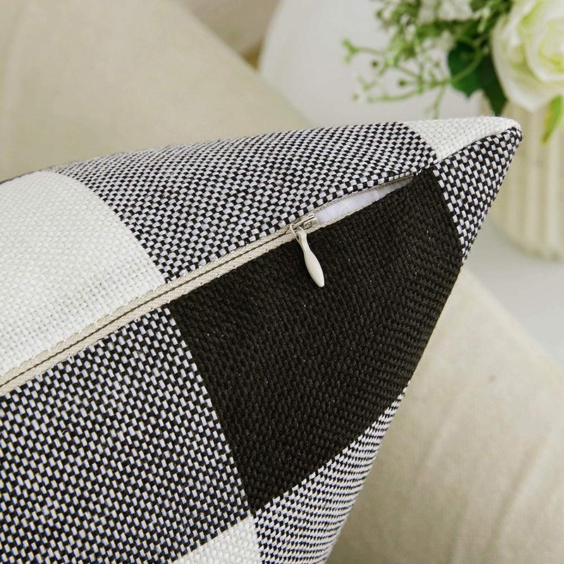 MIULEE Pack of 2 Classic Retro Checkers Plaids Linen Soft Solid Black and White Decorative Throw Pillow Covers Home Decor Design Cushion Case for Sofa Bedroom Car 16 x 16 Inch 40 x 40 cm