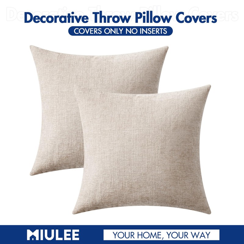 MIULEE Pack of 2 Couch Throw Pillow Covers 18x18 Inch Soft Light Brown Chenille Pillow Covers for Sofa Living Room Solid Dyed Pillow Cases