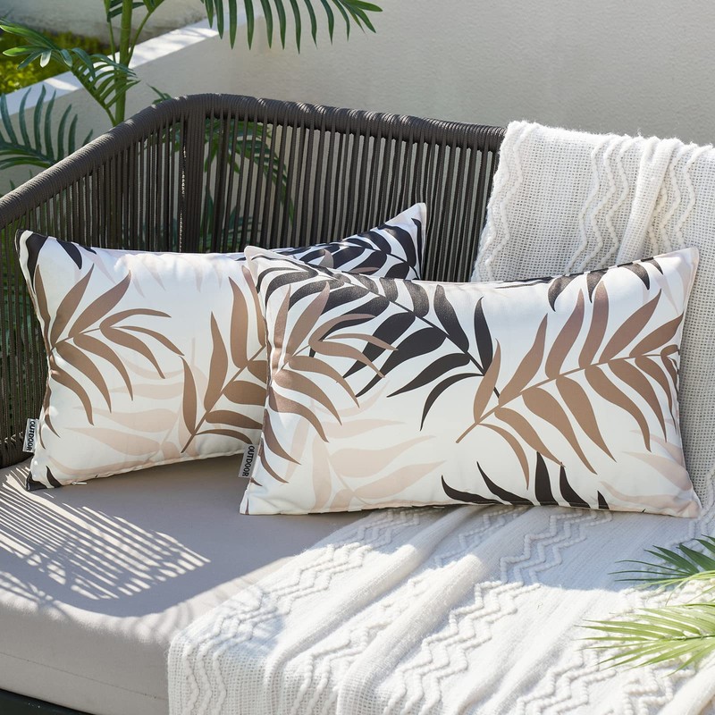 MIULEE Pack of 2 Decorative Outdoor Waterproof Throw Pillow Covers Patio Pillow Cases Natural Leaves Pattern Spring Square Cushion Shams Shell for Garden Balcony Couch 12x20 Inch, Coffee Brown