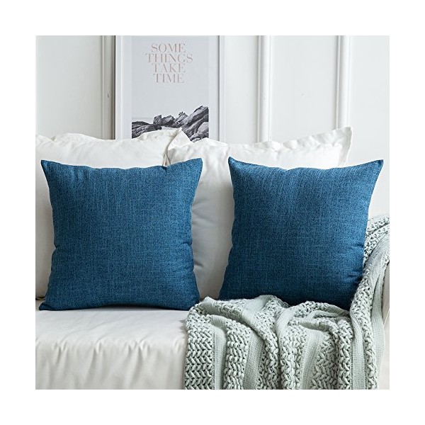 MIULEE Pack of 2 Decorative Throw Pillow Covers Farmhouse Linen Burlap Square Solid Throw Cushion Cover Pillowcase for Sofa Couch 24x24 Inch 60x60 cm Navy Blue