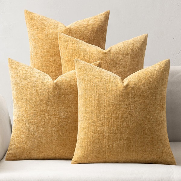 MIULEE Pack of 4 Throw Pillow Covers 18x18 Inch Soft Chenille Couch Pillow Covers for Fall Sofa Living Room Solid Dyed Pillow Cases Gold