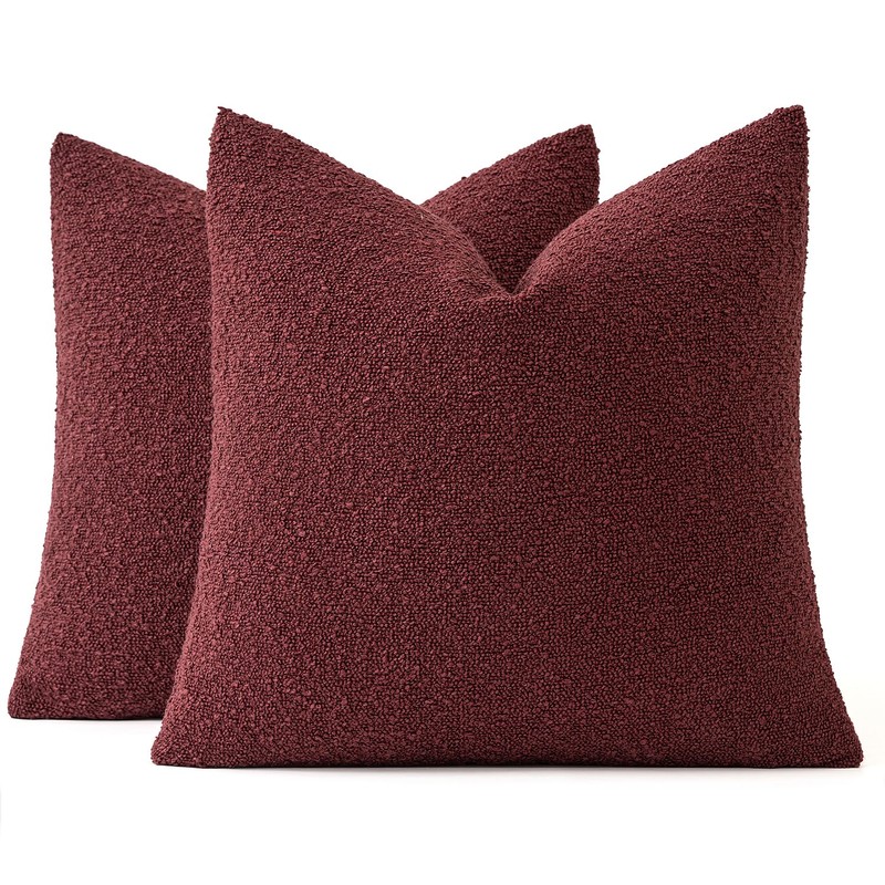 MIULEE Set of 2 Christmas Burgundy Throw Pillow Covers 20x20 Inch Decorative Couch Pillow Covers Textured Boucle Accent Solid Pillow Cases Soft for Cushion Chair Sofa Bedroom Livingroom Home Decor