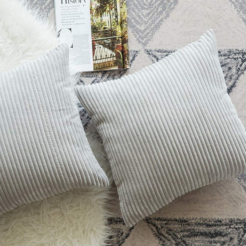 MIULEE Set of 2 Cushion Covers, Corduroy Cushion Cover, Decorative Cushion Cover, Sofa Cushion, Couch Cushion, Decorative Cushion Cover with Hidden Zip, 65 x 65 cm, Light Grey