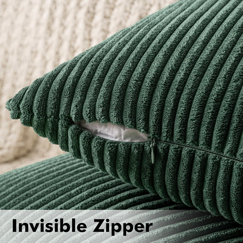 MIULEE Set of 2 Striped Corduroy Square Throw Pillow Case Soft Cushion Cover Sham Home for Sofa Chair Couch/Bedroom Decorative Fluffy Large Pillowcases 12x20 Inch 30x50cm Dark green
