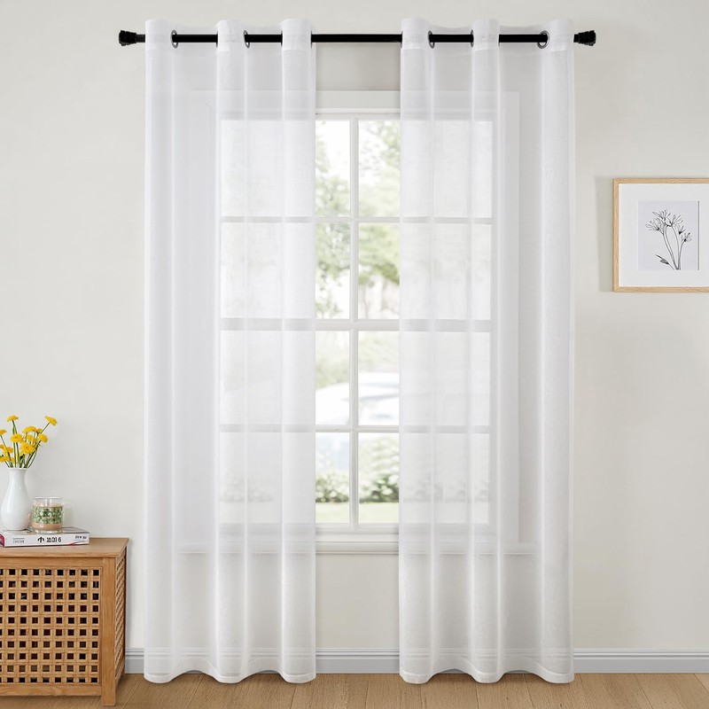 MIULEE Sheer Voile Curtain with Eyelets Transparent Look Curtain Eyelet Curtain Transparent for Bedroom Living Room 102 x 260 cm (W x H) Set of 2 White