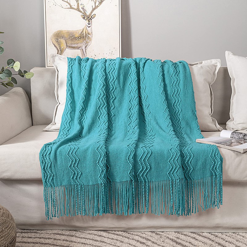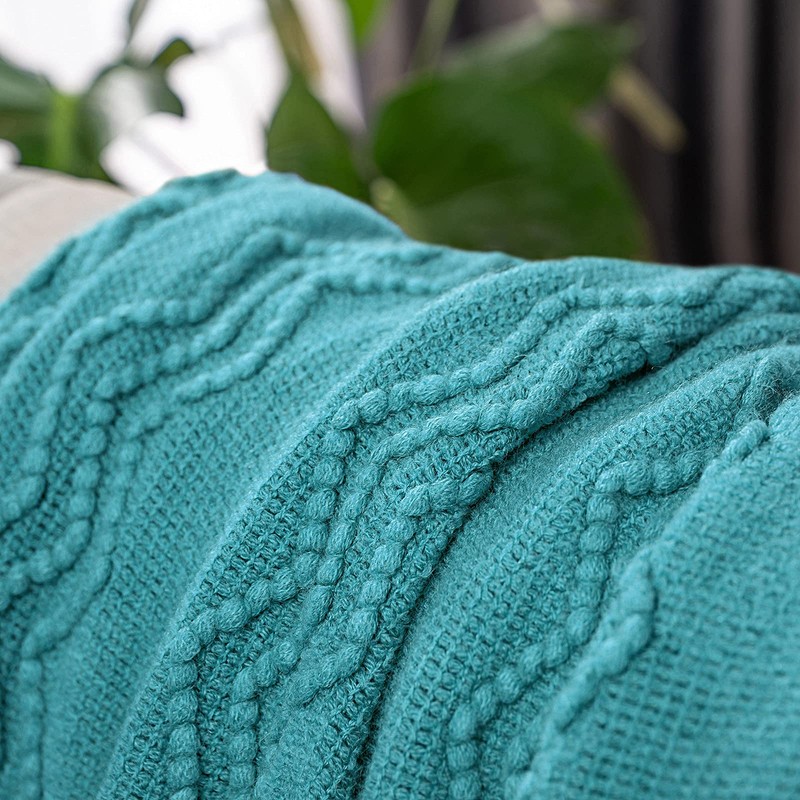 MIULEE Teal Knitted Throw Blanket for Couch Textured Knit Blanket with Tassels Cozy Woven Bed Blanket for Sofa Bed Chair Wave Pattern Home Decor for All Seasons 50"x60"