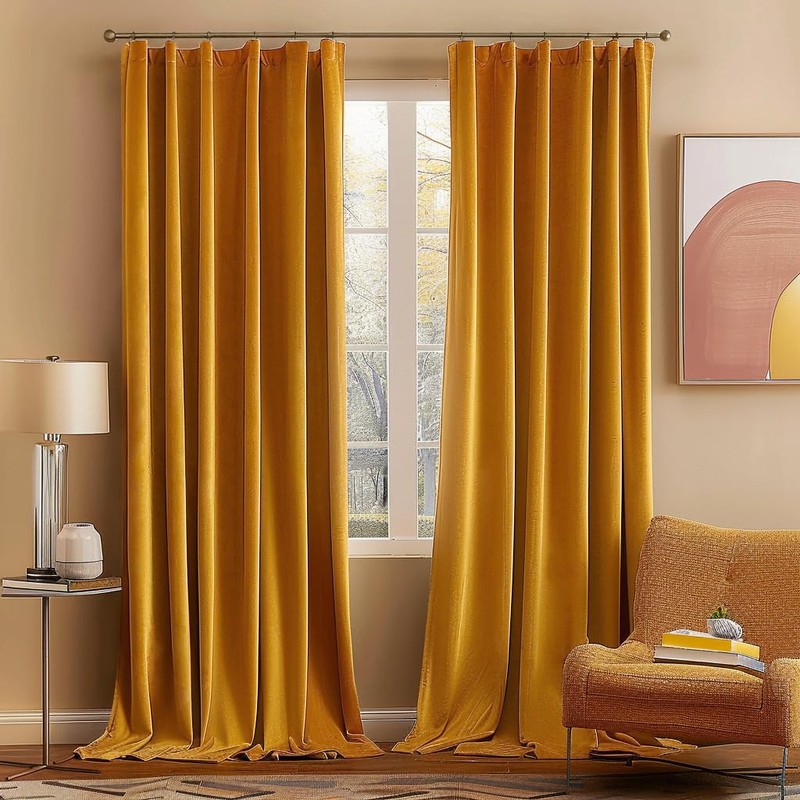 MIULEE Velvet Curtains 96 inches 2 Panels - Luxury Blackout Curtains for Bedroom Living Room Thermal Insulated Fall Decor Super Soft Window Drapes Rod Pocket & Back Tab, Mustard Yellow