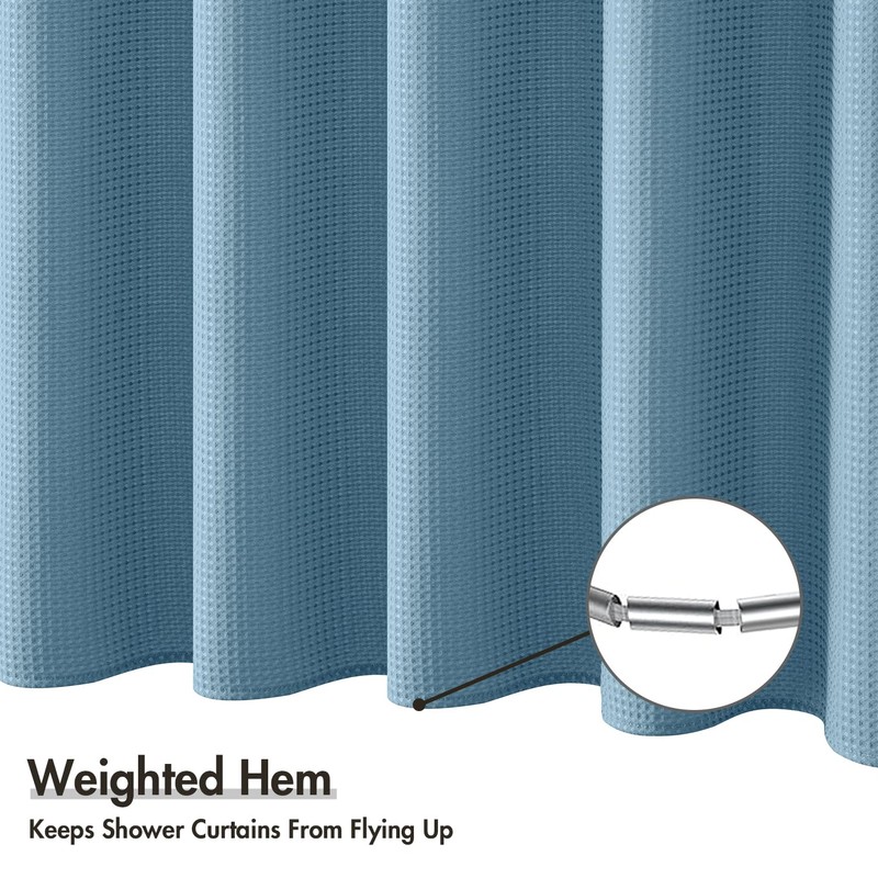 - PACKAGE INCLUDES: Comes with 1 waffle weave shower curtain featuring reinforced metal holes and 12 bonus metal hooks, rust resistant and easy to slide. You will enjoy the added convenience of these bonus hooks while saving on the cost and effort.