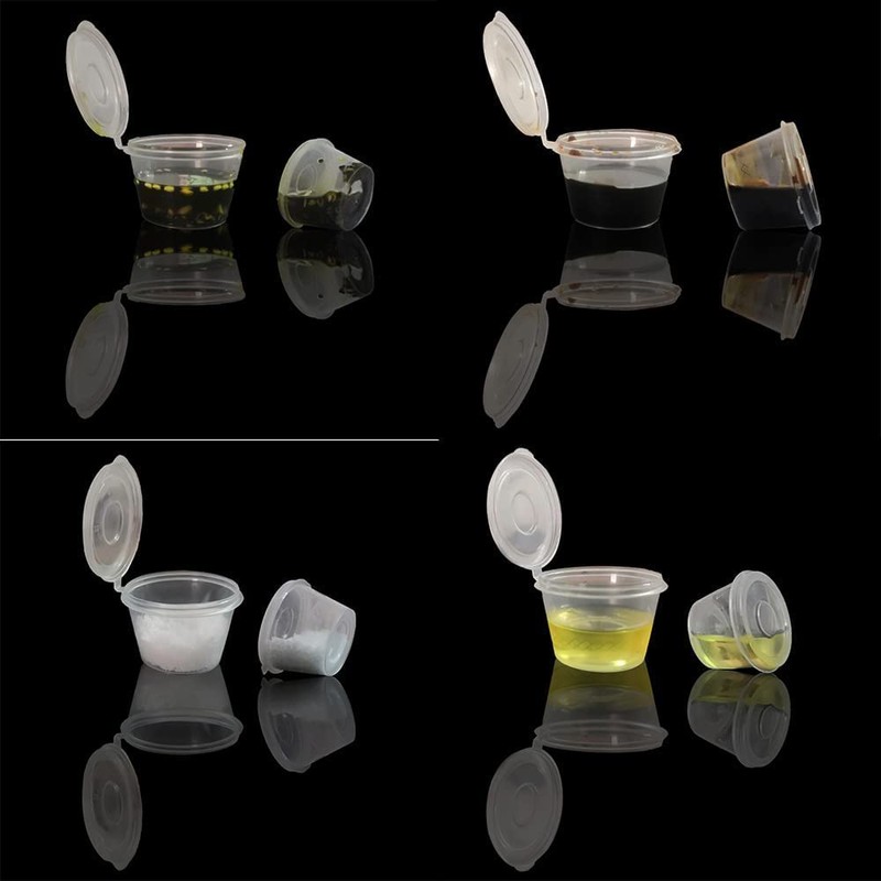 • Capacity: 50 sauce cups with lids, 1 oz (28.4 ml) capacity. Many food and health lovers use it to control portions or prepare meals, as well as to make beads, sequins, pins and mucus by amateur DIY craftsmen!